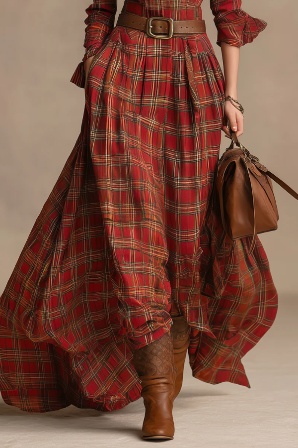 Combining retro and American Western style, the red and brown plaid has a classic retro feel and is paired with western boots. The plaid element is classic and timeless, and the red and brown color scheme is retro and atmospheric, which can easily adapt to the needs of layering or wearing alone in autumn and winter.