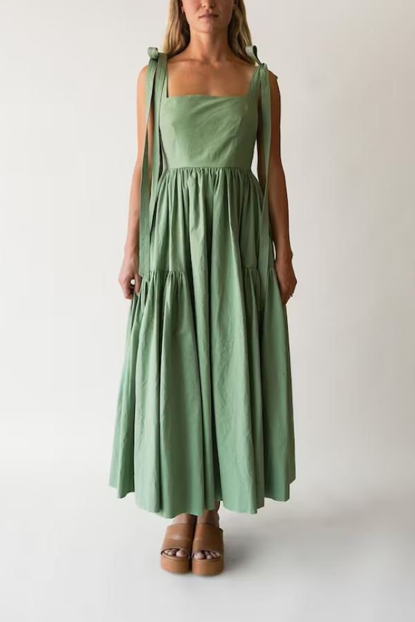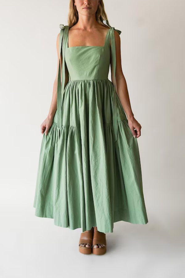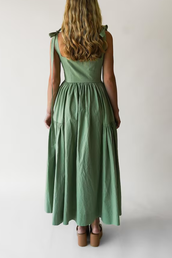 The fluffy, double-layered pleated skirt creates an airy feel when you move, retaining the elegance of vintage dresses while the relaxed fit reduces formality, making it perfect for everyday wear. The length is adjustable, allowing you to tie a bow for a sweet touch or adjust the tightness to suit different body types and shoulder shapes. The square neckline reveals the collarbone for a refined look, and the cinched waist naturally enhances the waist-to-hip ratio, offering some forgiveness around the midsection. The double-layered pleats add a sense of volume to the dress, but the lightweight fabric ensures comfort and unrestricted movement.